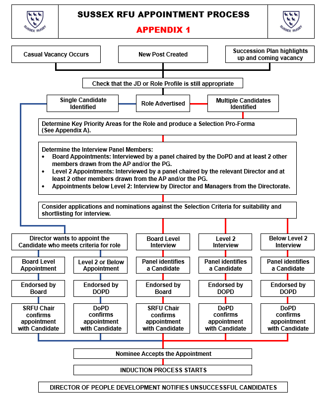 The appointments process is overseen by the Director of People Development (DoPD) and subject to oversight by the Director of Governance and Constituent Clubs.